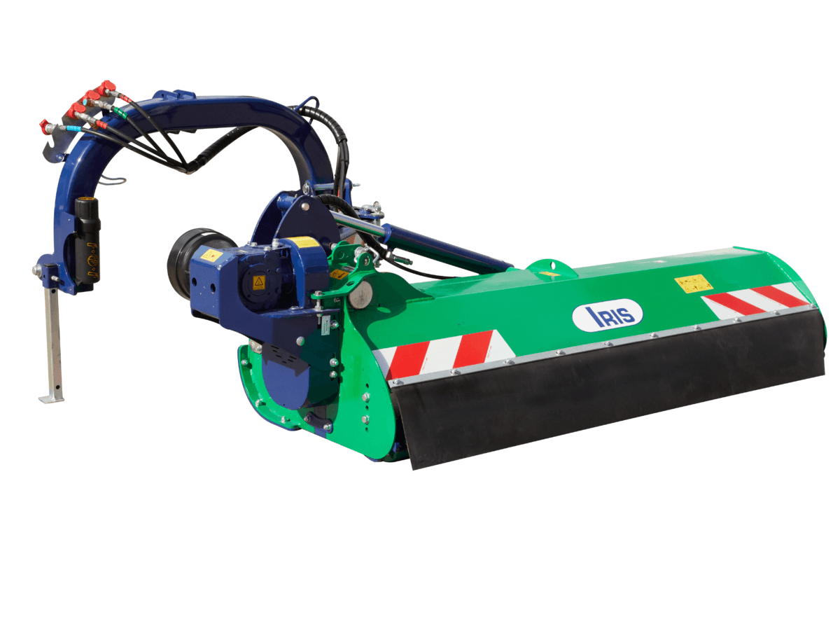 Les broyeurs d’accotement IRIS permettent un déport latéral plus important pour l’entretien des vergers, des broussailles et des bords de routes et sont adaptés pour des tracteurs de puissance moyenne et les tracteurs de grands gabarits. Boîtier extérieur avec roue libre, entraînement 4 courroies, rotor Ø168mm équipé de marteaux B2. Attelage en chapes - Flottant et déportable par parallélogramme. Antiprojection palettes zinguées avant et patins semelle anti-usure boulonnés en HARDOX®