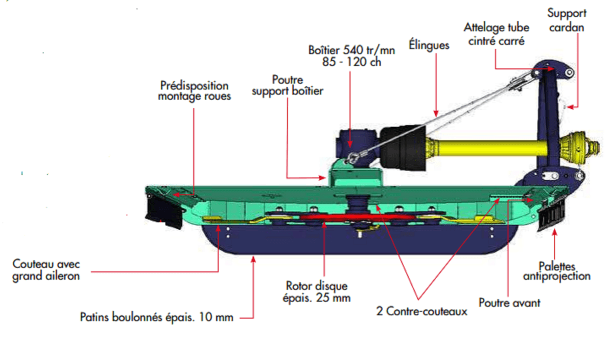 Broyage à droite : attelage 3 points arrière, 3 points avant ou chargeur. Broyage à gauche : attelage...