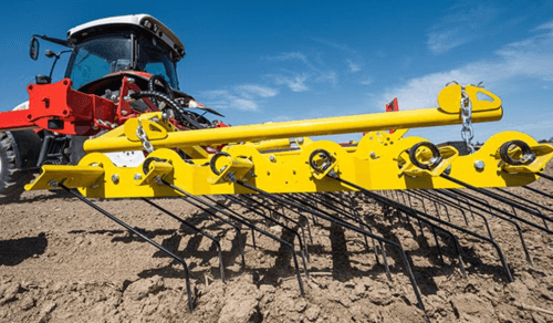 Montage possible de dents de 6 mm, 7 mm et 8 mm. L’angle de coudage des dents est important pour un meilleur étrillage. Résultat régulier sur toutes les largeurs existantes grâce à un écart très précis des dents.