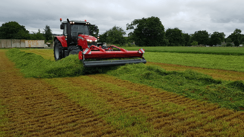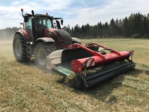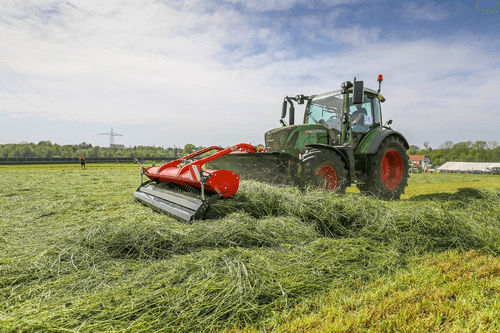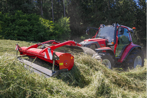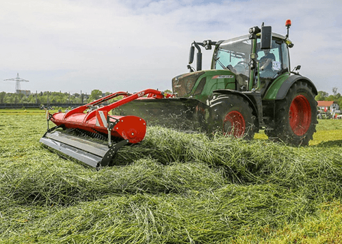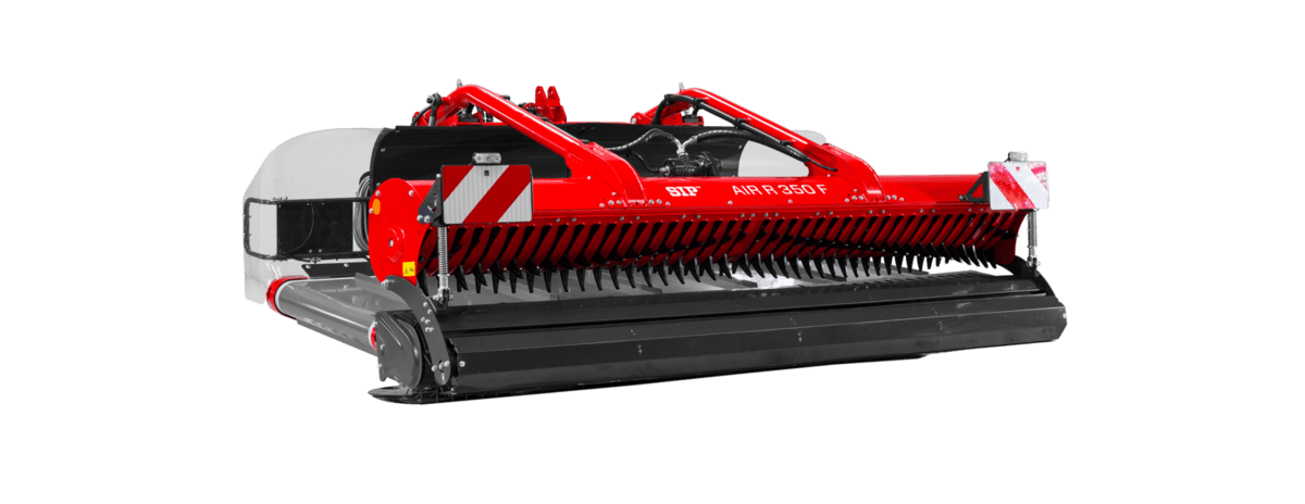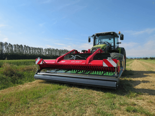 Andaineur frontale à tapis pour un fourrage garantit sur des terrains particulièrement escarpés pour un andainage sur tous types de prairie et pour un bon résultat sur luzerne, paille et résidu de récolte .Equipé d’un attelage robuste avec suspension hydropneumatique pour les changements de terrains, d’un moteur hydraulique pour la direction et la vitesse du tapis transporteur. Les andains sont placés sur le côté afin d’éviter que les roues passent pas dessus.