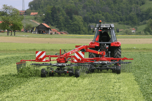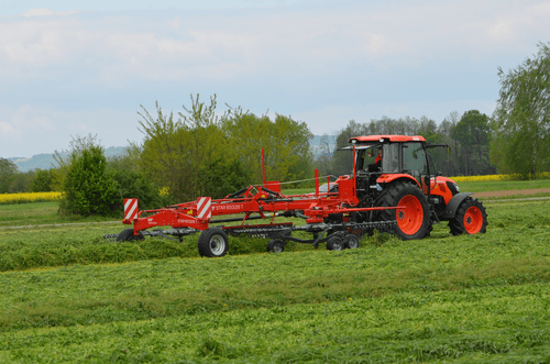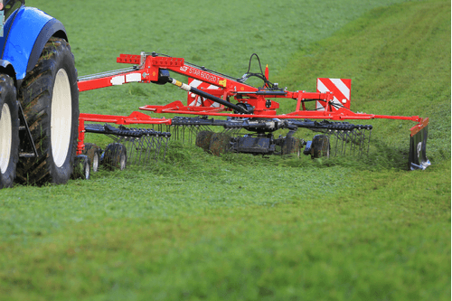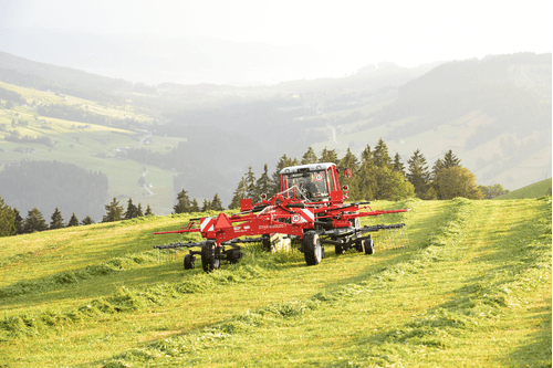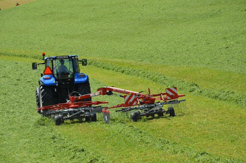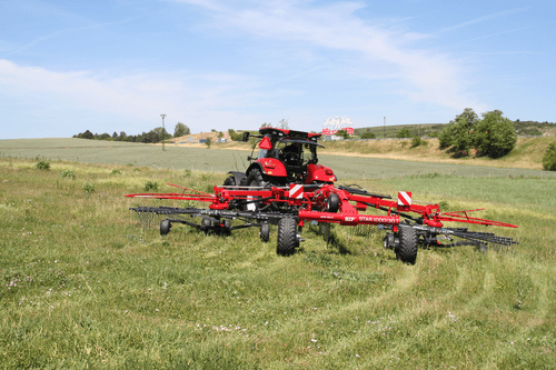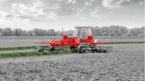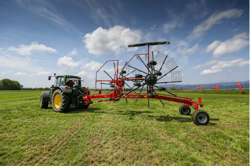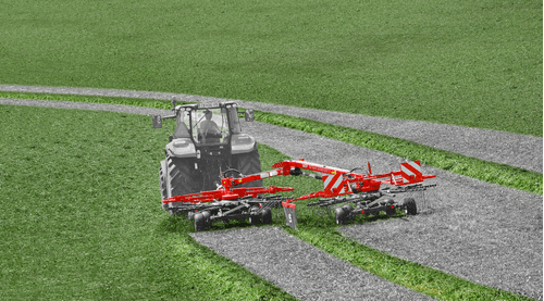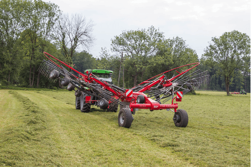 Les andaineurs traînés à 2 rotors sont robustes et efficaces et assurent des andains réguliers, homogènes et propres que ce soit à dépose latérale ou centrale.