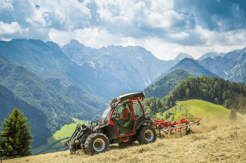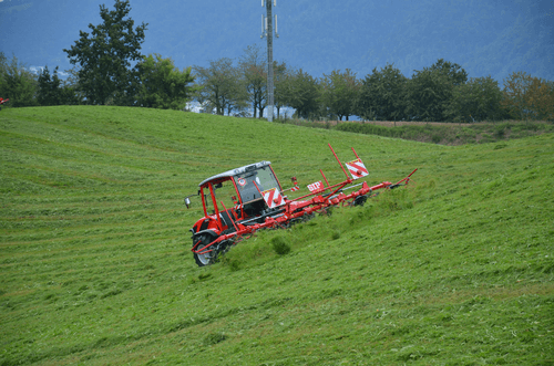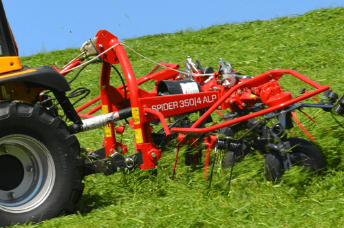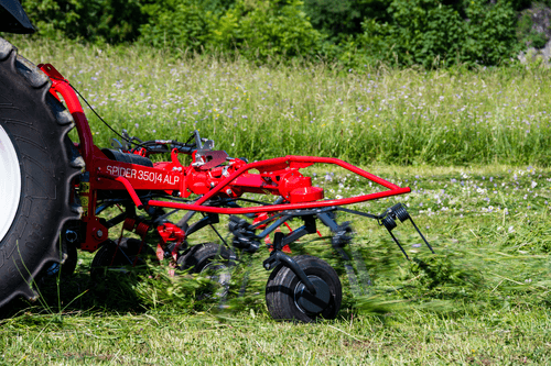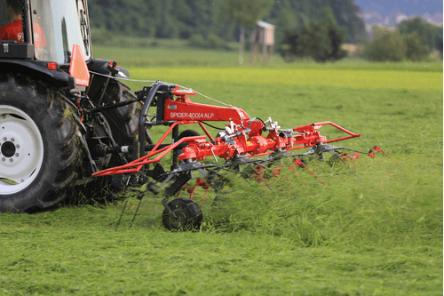 Large gamme de faneuses rotatives de la catégorie Alpine équipée de 4 ou 6 rotors. Elles sont particulièrement conçues pour des terrains pentus. Légères, elles sont très maniables et peuvent être utilisées avec des tracteurs moins puissants dans des champs plus petits. Rapidité d’adaptation, stabilité et facile d’entretien, elles permettent un travail de fourrage propre notamment grâce à des dents ressorts de différentes longueurs et grâce à la conception des rotors dont la facilité de repliage rend plus simple le transport. Une roue de jauge assure une hauteur de travail qui permet une bonne adaptation au relief.