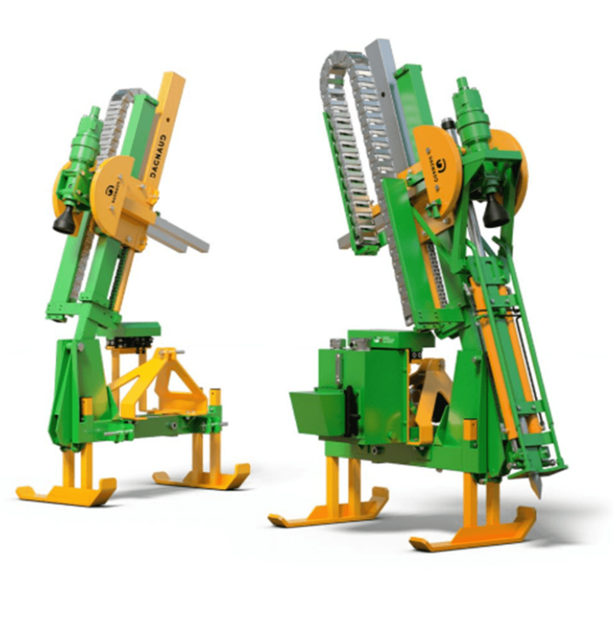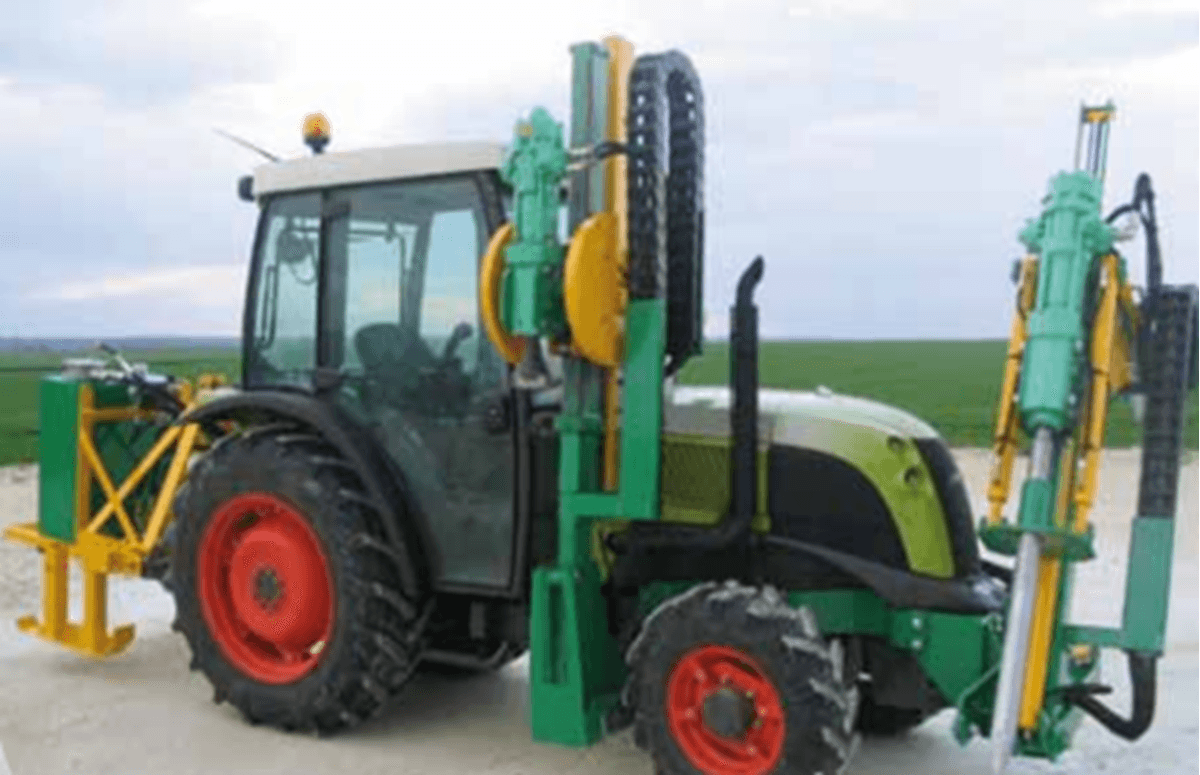 Une grande gamme d’enfonces pieux (en bois ou métallique) pour les vignes avec attelage 3 points ou montage à l’avant entre les roues du tracteur ou sur machine à vendanger et enjambeur ou pour les vergers sur minipelle, pelle et chenillard pour les endroits difficiles d’accès. Choix d’équipements en option pour chaque utilisation.