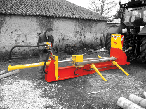 La puissance de fendage de ces 2 modèles est de 15 tonnes avec pompe tracteur 2 coupleurs (18 t en option, entrainement PDF 540 tr/min).