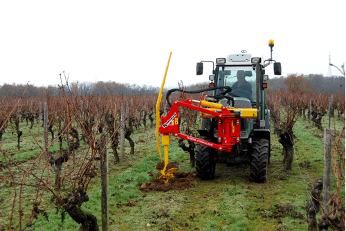 3-Pour une utilisation viti, les tarières MINI-JUNIOR et JUNIOR déportables, s’adaptent à des tracteurs de 15 à 60 cv. Elles s’utilisent pour la création et la rénovation des vignes.