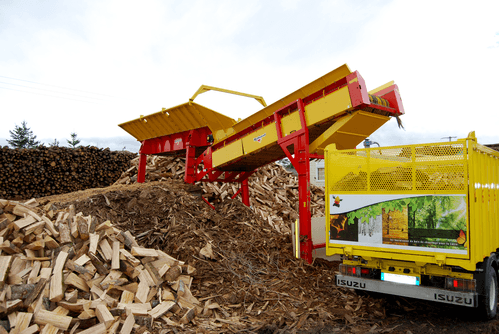 Grande surface de criblage de 4x1 m, le chargement se fait par déversement godet ou en sortie de combiné scieur/fendeur.