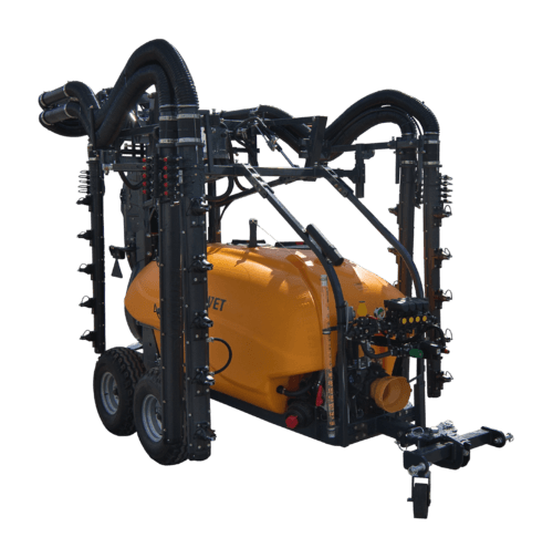 Voûte géométrique équipement électro-distributeur 7 fonctions de série, 6 descentes multi-canons (avec sécurité) obturables en air et en liquide, essieu balancier de série, 4 sections et vannes de régulation électrique de série.