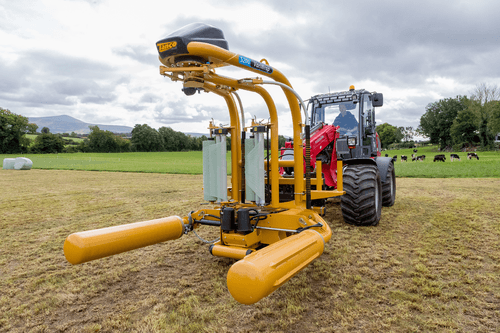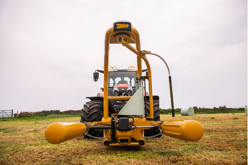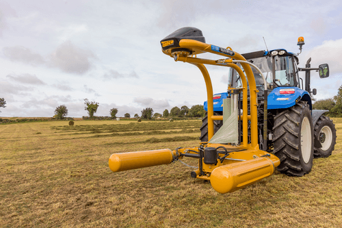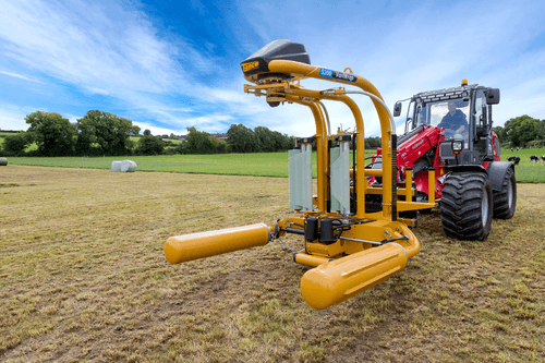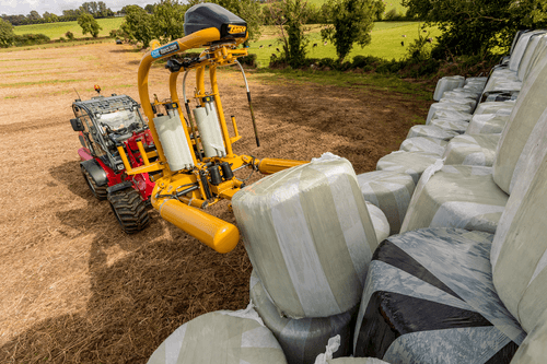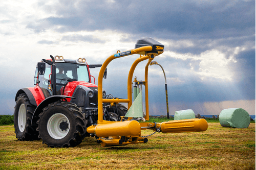 Enrubanneuse à balles rondes portée à satellites