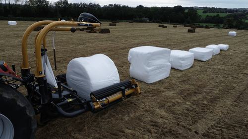 Enrubanneuse portée à 3 points pour balles rondes jusqu’à 1,7 m de diamètre et balles carrées jusqu’à 1,9 m de long. Equipée de 2 satellites et d’un coupe film télescopique Cut & Start. Chargement automatique rapide et en douceur grâce au système hydraulique à vitesse variable.