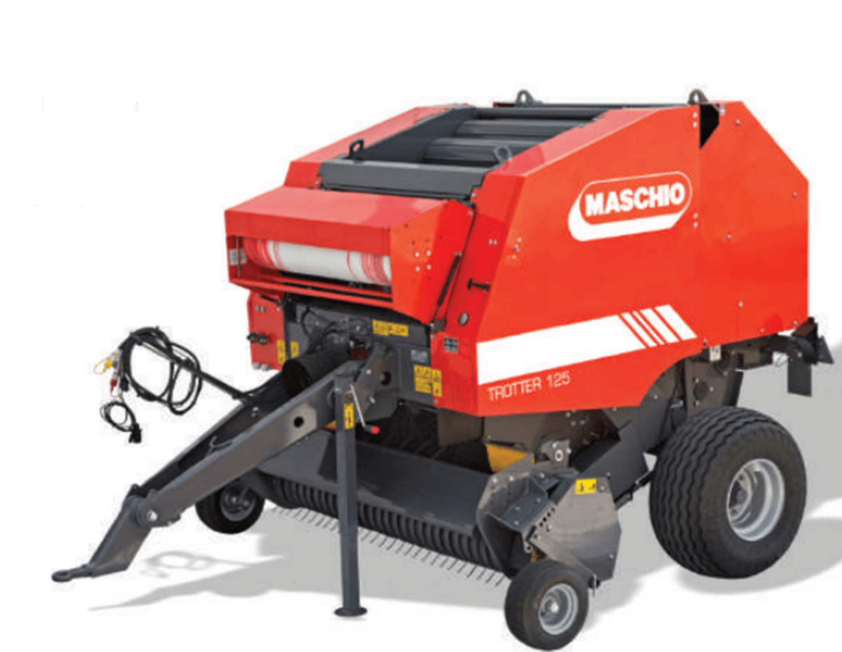 Presse a balles rondes à chambre fixe Trotteur à 18 rouleaux. Compression mécanique de la balle. Lubrification automatique des chaînes. Equipée d'un pick-up de 2,20 m. Balle Ø 1,25 m. Ameneur rotatif ou alternatif selon le modèle. Choix d’équipement suivant l’utilisation.