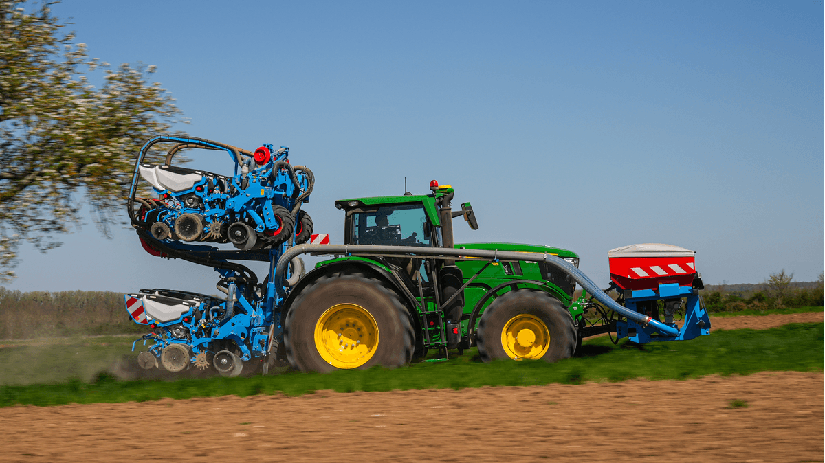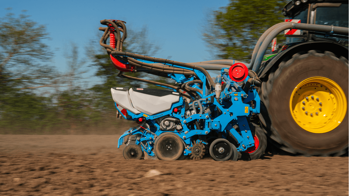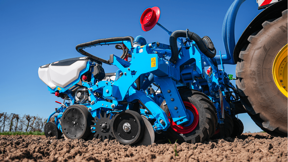 Nouveau châssis porté TFC2, disponible de 8 à 12 rangs avec inter rangs de 45 à 80 cm, gabarit routier 3 ou 3.5m. Châssis flottant en trois parties assurant un suivi de terrain remarquable. Système d’enfouissement d’engrais, alimenté soit par une trémie frontale, soit par une trémie embarquée de 1350L (pour les versions 8 rangs). Nouveaux enfouisseurs mono-disque à roue de jauge, garantissant une profondeur de dépôt constante, qu’importe la typologie du sol. Système innovant d’accompagnement des graines ASG. Convoyage des graines via une brosse, permettant un contrôle total de la trajectoire de la graine, depuis le disque de sélection jusqu’à sa dépose dans le sillon. Grâce à une vitesse de sortie proportionnelle à celle du tracteur, l’espacement entre les graines reste d’une précision ultime, vitesse d’avancement de 4 à 18 km/h.