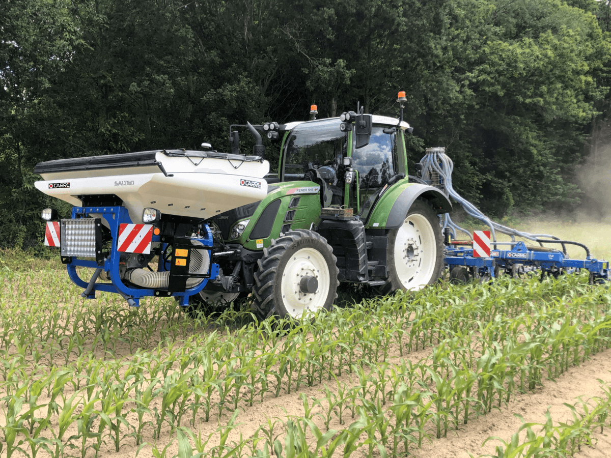La trémie frontale SALTEO est polyvalente, semis et apport d’engrais solide. Avec une trémie 1900L traitée anti-corrosion, une soufflerie hydraulique puissante et d’un doseur volumétrique en acier inoxydable pour un dosage précis du semis, de l’engrais (de 1.5Kg à 450 Kg/ha). Elle peut être combinée avec un matériel de semis, un strip-till, ou une bineuse pour la fertilisation. Utilisation simple avec ISOBUS et possibilité de prendre le kit terminal TOUCH800 si le tracteur n’est pas équipé ISOBUS. Nombreux équipements, marche pieds escamotable, bâche souple à enroulement, béquilles de remisages intégrées, signalisation et éclairage…
