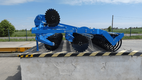 deux rangées de disques dentés de 560 mm de diamètre.