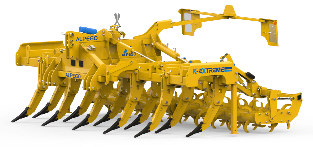 Craker 4m repliable, 9 dents avec système de démontage des socs et des exploseurs ultra rapide AL-Fast, rouleaux Franter H50 double à pointes et terrage hydraulique pour un affinage parfait, grand dégagement de 885mm. Large gamme disponible de 2,5 à 6m, fixe ou repliable, sécurité boulon ou non-stop hydraulique.