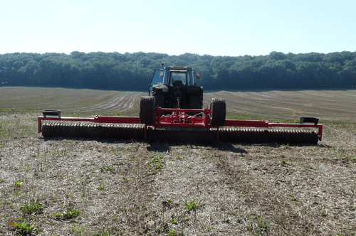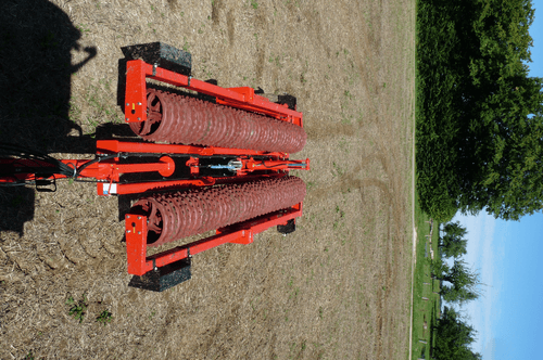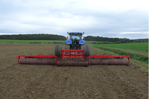 Repliage et dépliage des sections hydrauliques synchronisées. Béquille escamotable et freinage hydraulique. Attelage sur bras de relevage Cat.3