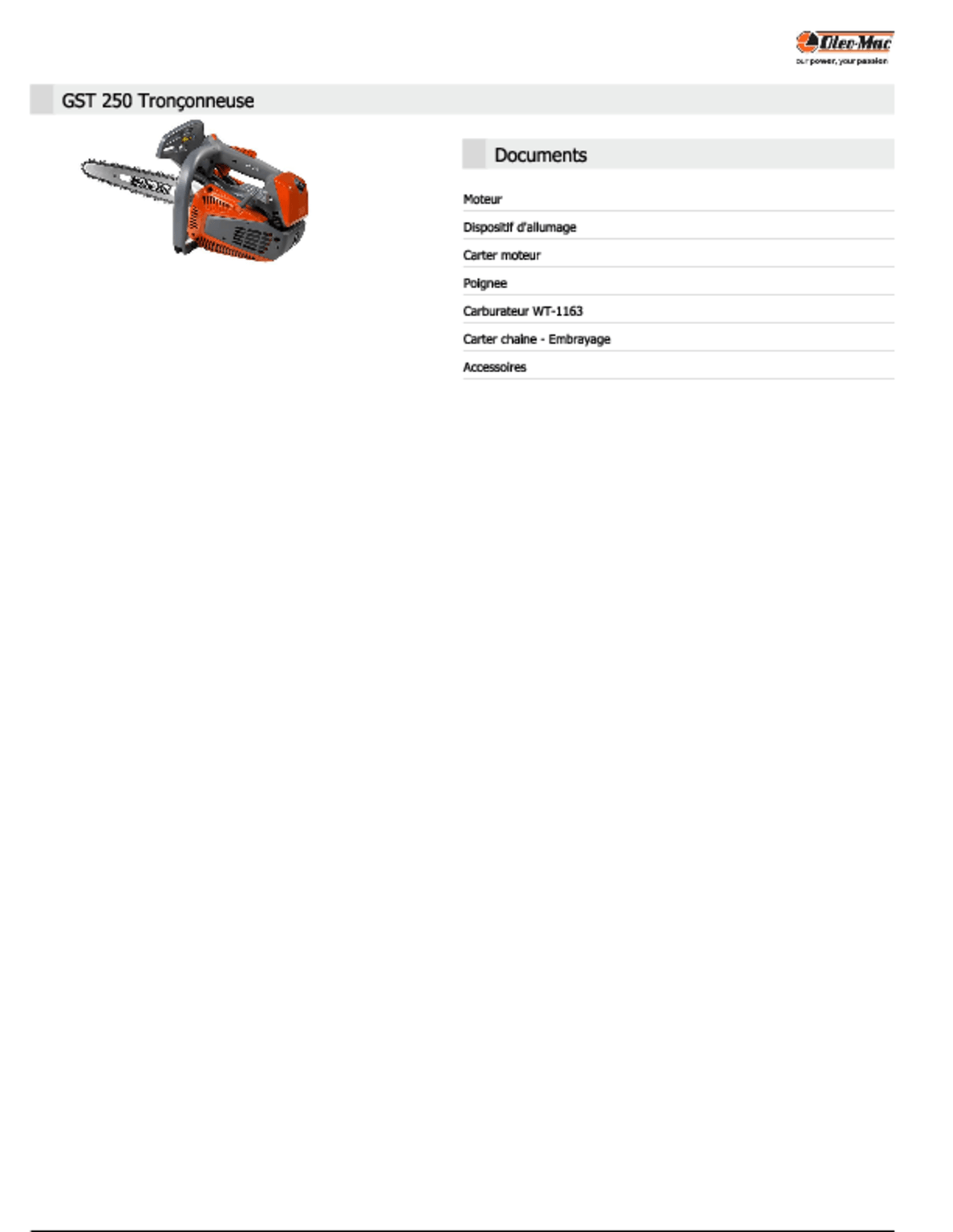 2T. Puissance 1,7 kW. 2,4 ch. Vitesse de chaîne à vide 25,3 m/s. Longueur guide chaîne 35 cm. Pas de...