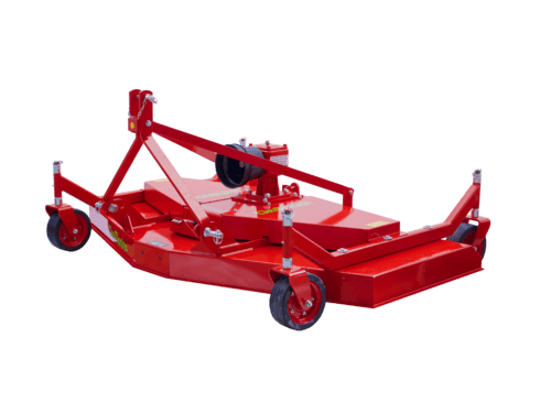 Attelage à 3 points catégorie 1. Boîtier en fonte 540 trs/min. Transmission par courroies. Éjection arrière. Prédisposée pour montage du kit mulching. Roues pivotantes réglables. 3 rotors à 1 lame. Poids 275 kg.