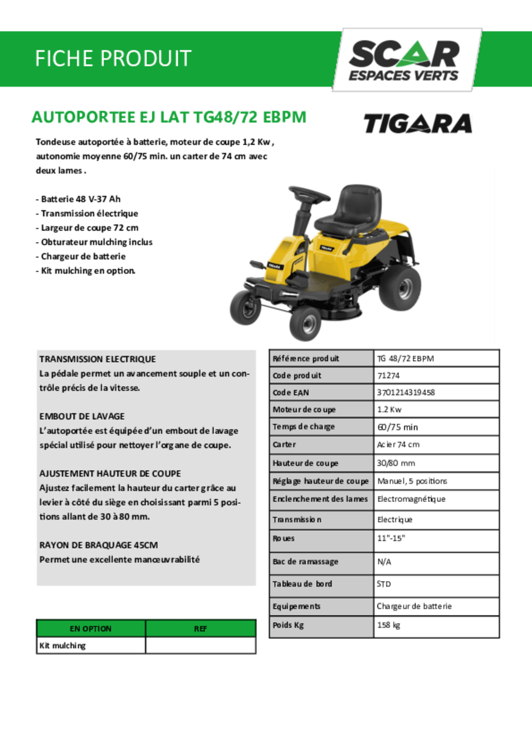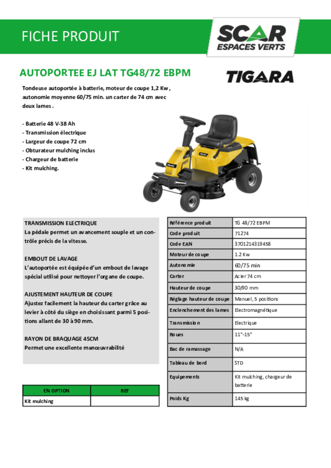 Kit mulching en option.
