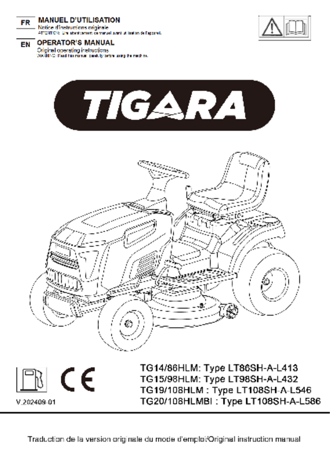 Tondeuse autoportée à éjection latérale TG 20/108 HLMBi
