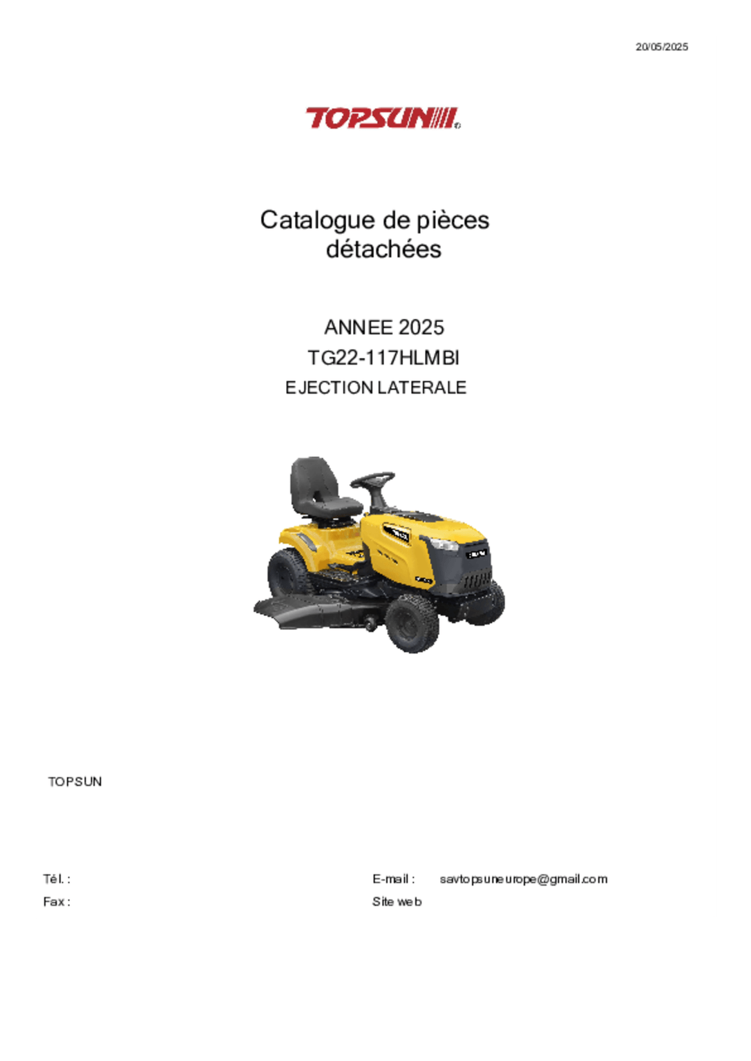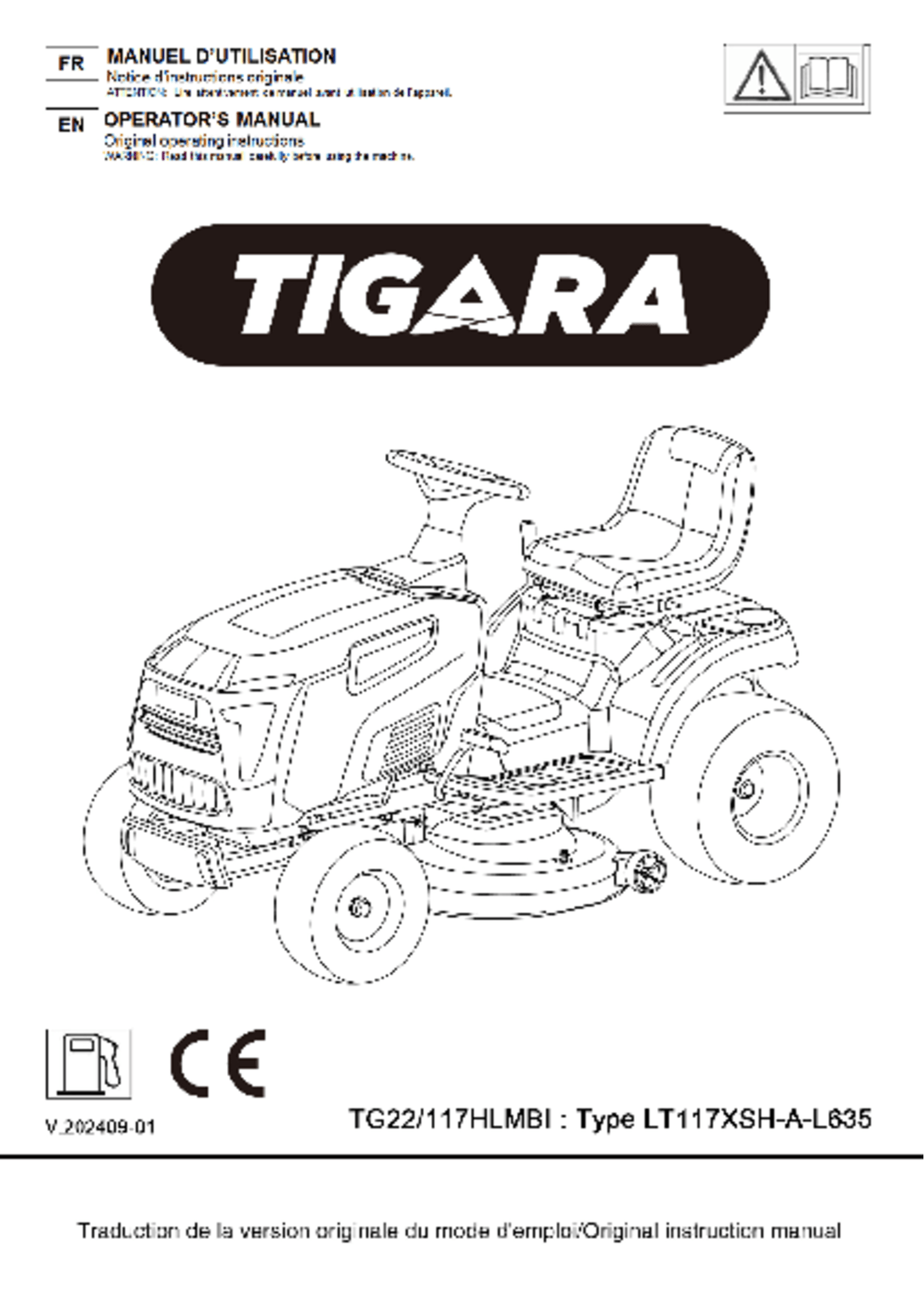 Tondeuse autoportée à éjection latérale TG 22/117 HLMBi
