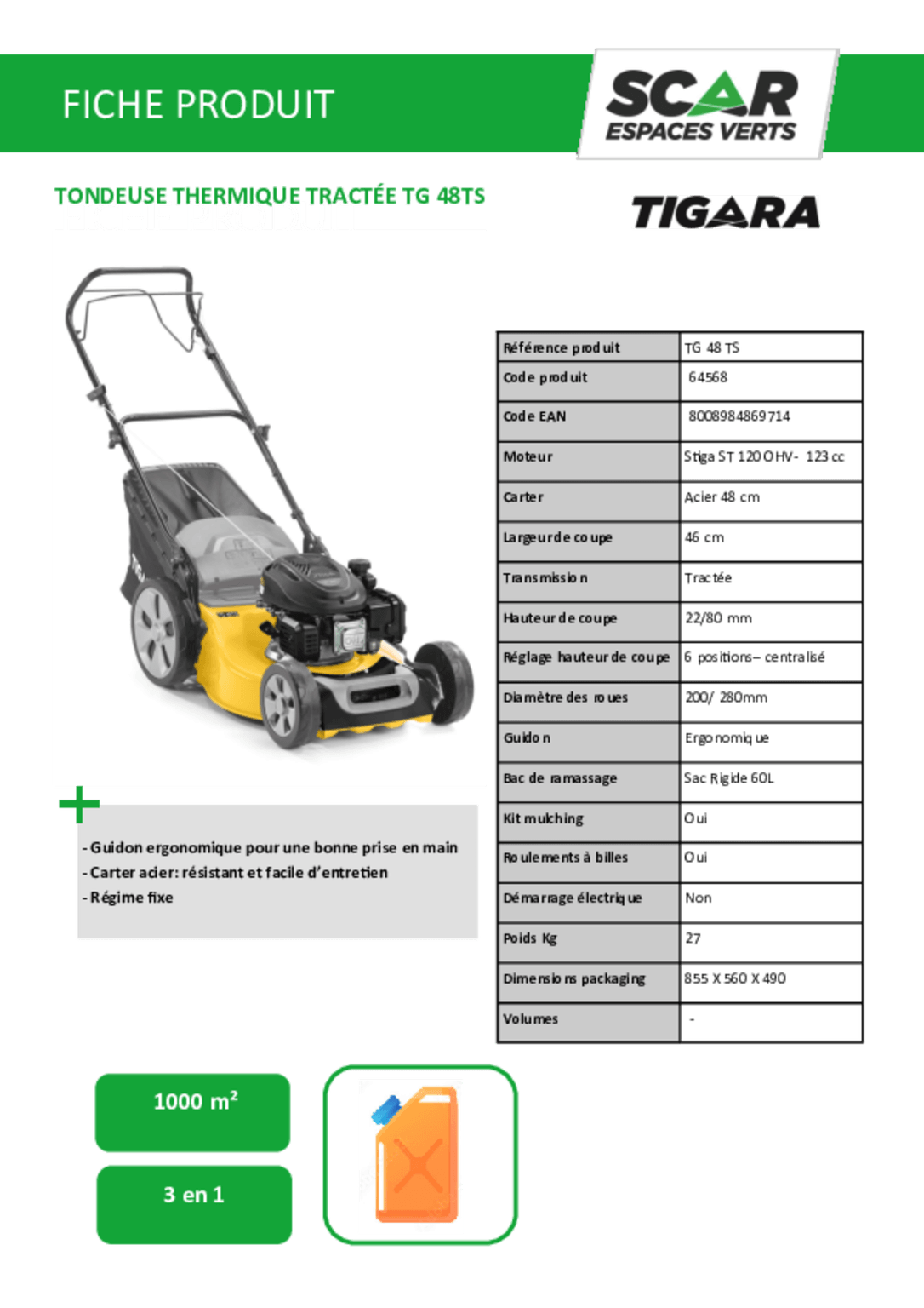 Tondeuse thermique tractée TG 48 TS