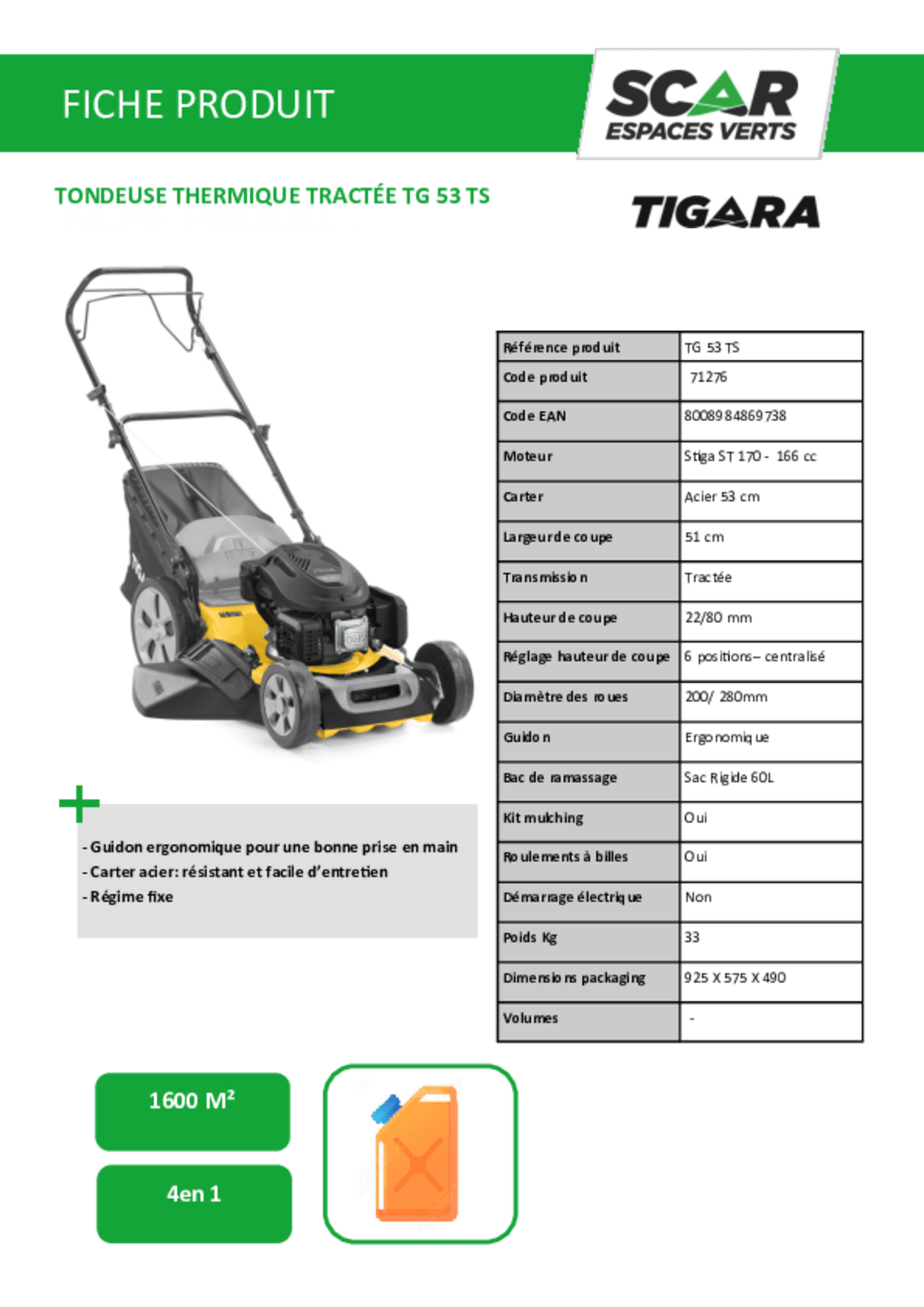 Tondeuse thermique tractée TG 53 TS