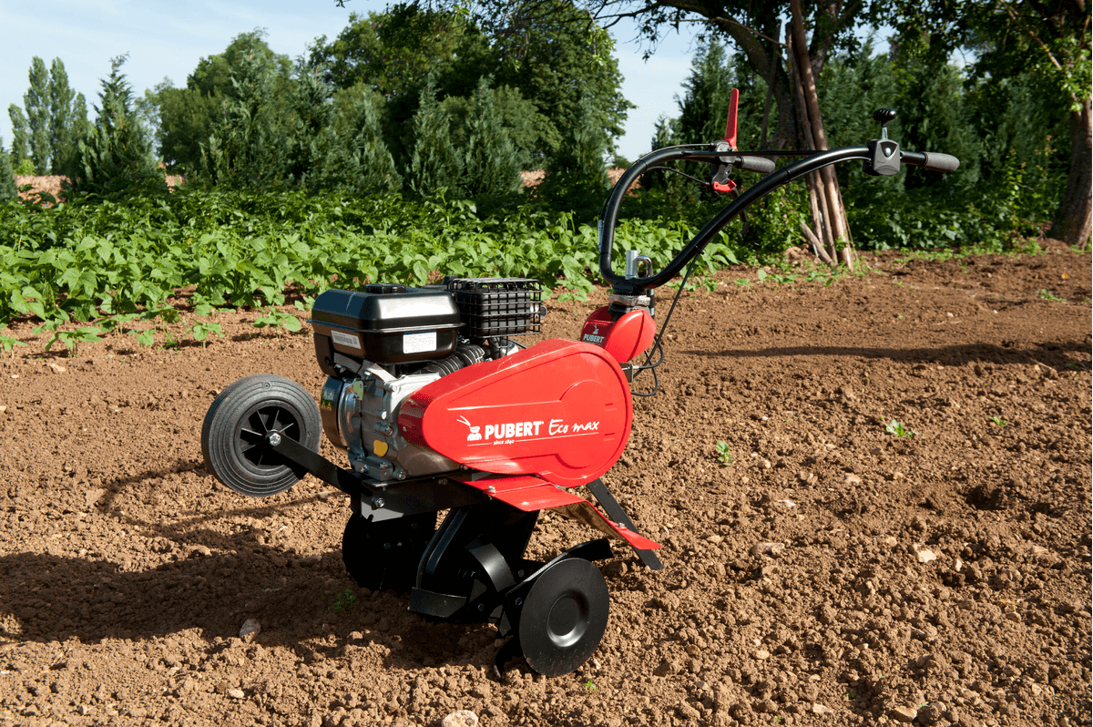 Moteur PUBERT R80. 79 cc. 1 vitesse AV et 1 AR. 4 fraises Ø 285 mm. Roue AV escamotable. Béquille de...