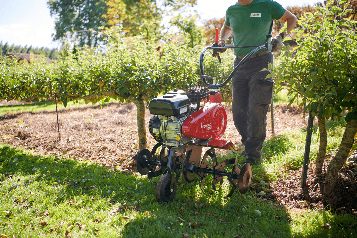 Moteur Pubert R80. Cylindrée 78 cc. Puissance 1,4 kW à 3600 tr/min. Largeur de travail 380 mm. 1 vitesse...