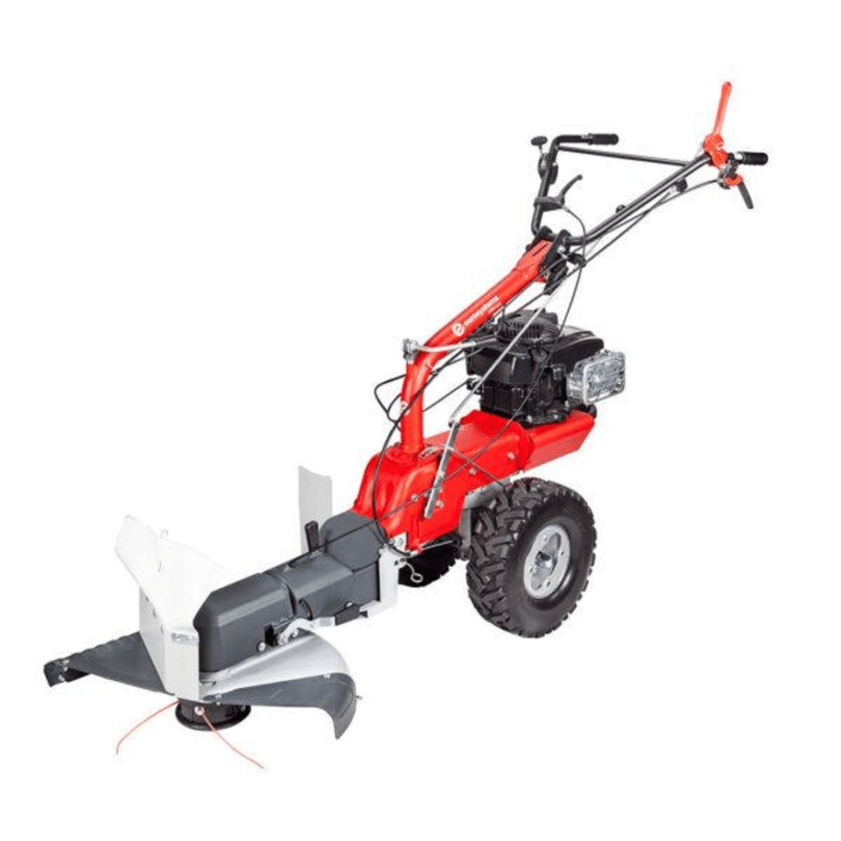 Moteur LONCIN OHV. 224 cc. 4,35 kW. Démarrage manuel. Transmission à engrenages et vis sans fin dans un bain d'huile et courroie. 3 vitesses avant (2 avec fraise), 2 vitesses arrière (1 avec fraise). Guidon déportable, repliable et réglable en hauteur. 2 roues 13x6x6.