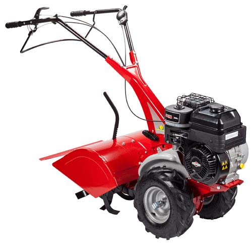 Moteur Loncin OHV. Cylindrée 182 cc. Puissance 3,1 kW. Démarrage manuel. Capacité du réservoir 3 L. Transmission à engrenages, chaine dans un bain d'huile et courroie. 1 vitesse avant, 1 vitesse arrière. Guidon réglable en hauteur. Béquille de terrage. 2 roues 13x5,00x6. 4 fraises. Diamètre 320 mm. Profondeur de travail : 220 mm. Largeur de travail : 500 mm. Poids 71 kg.