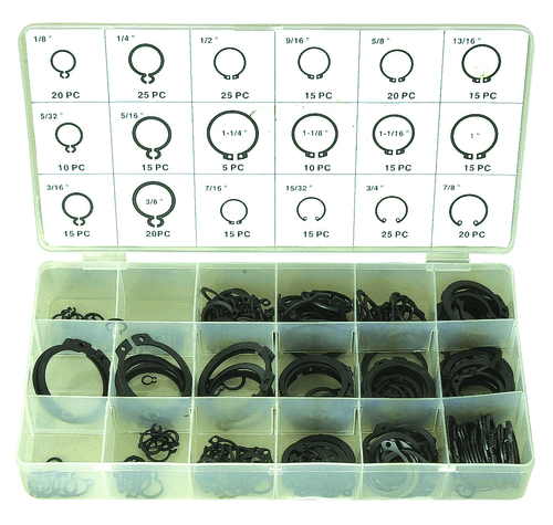 Coffret de 300 circlips intérieurs/extérieurs assortis.