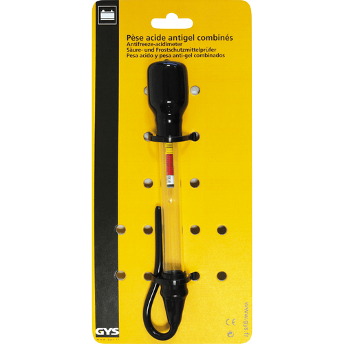 Vérifie l'état de la batterie et la protection antigel du moteur. Teste tout liquide de refroidissement à base d'éthylène glycol. Teste toutes batteries ouvertes 6-12-24V. Amplitude : 1,10-1,30 g/ml et -5 à 35°C.