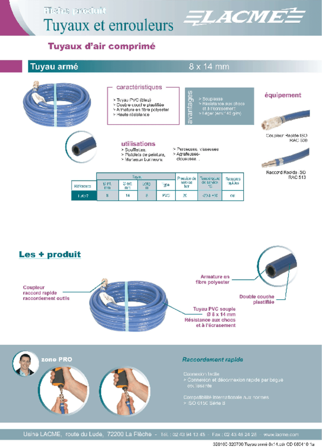 Avec raccords rapides : RAC 500 et RAC 513.
