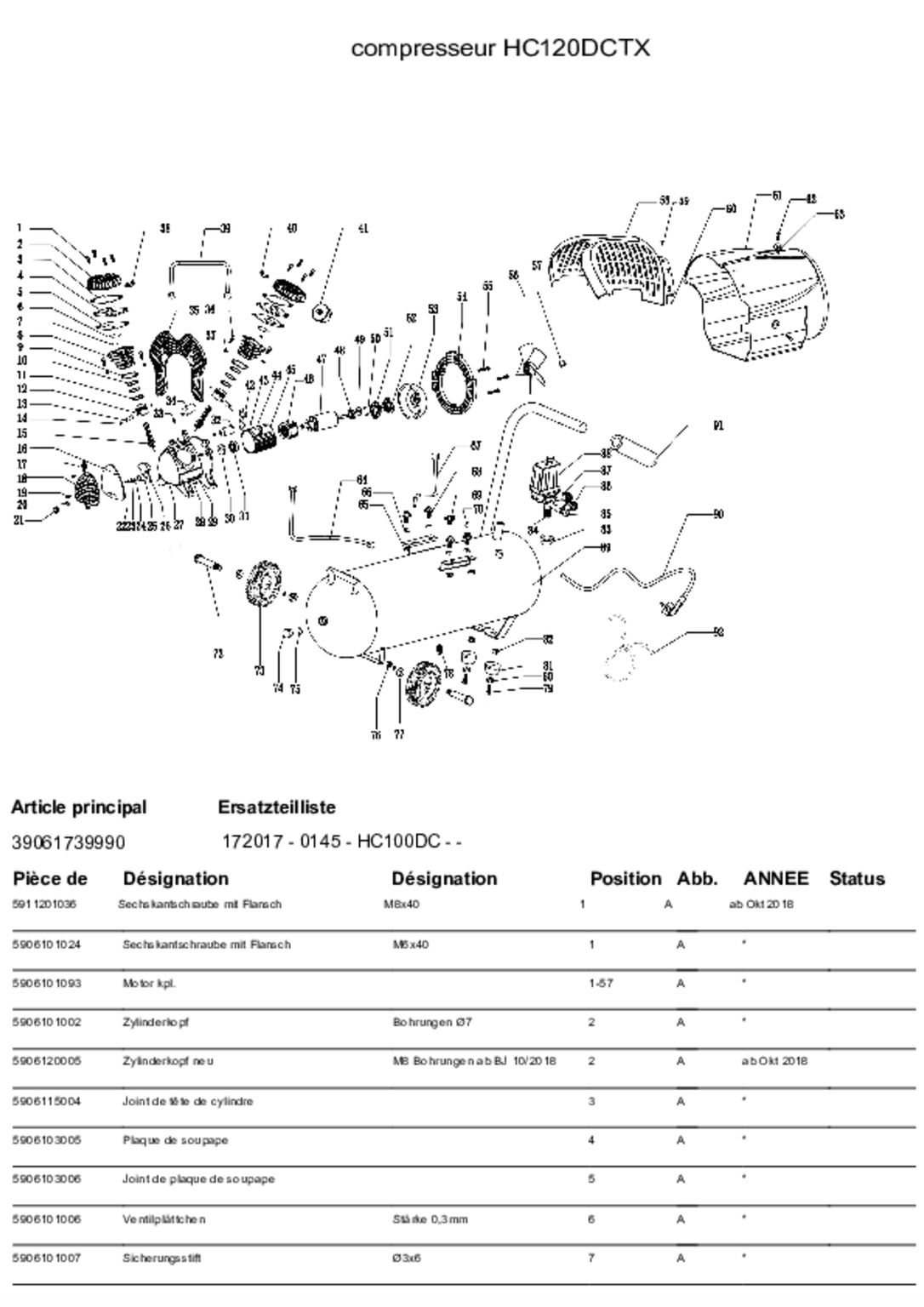 Sans huile. 40 L. Débit aspiré : 240 L/min, débit restitué : 170 L/min, 8 Bar. Moteur bicylindre vitesse...