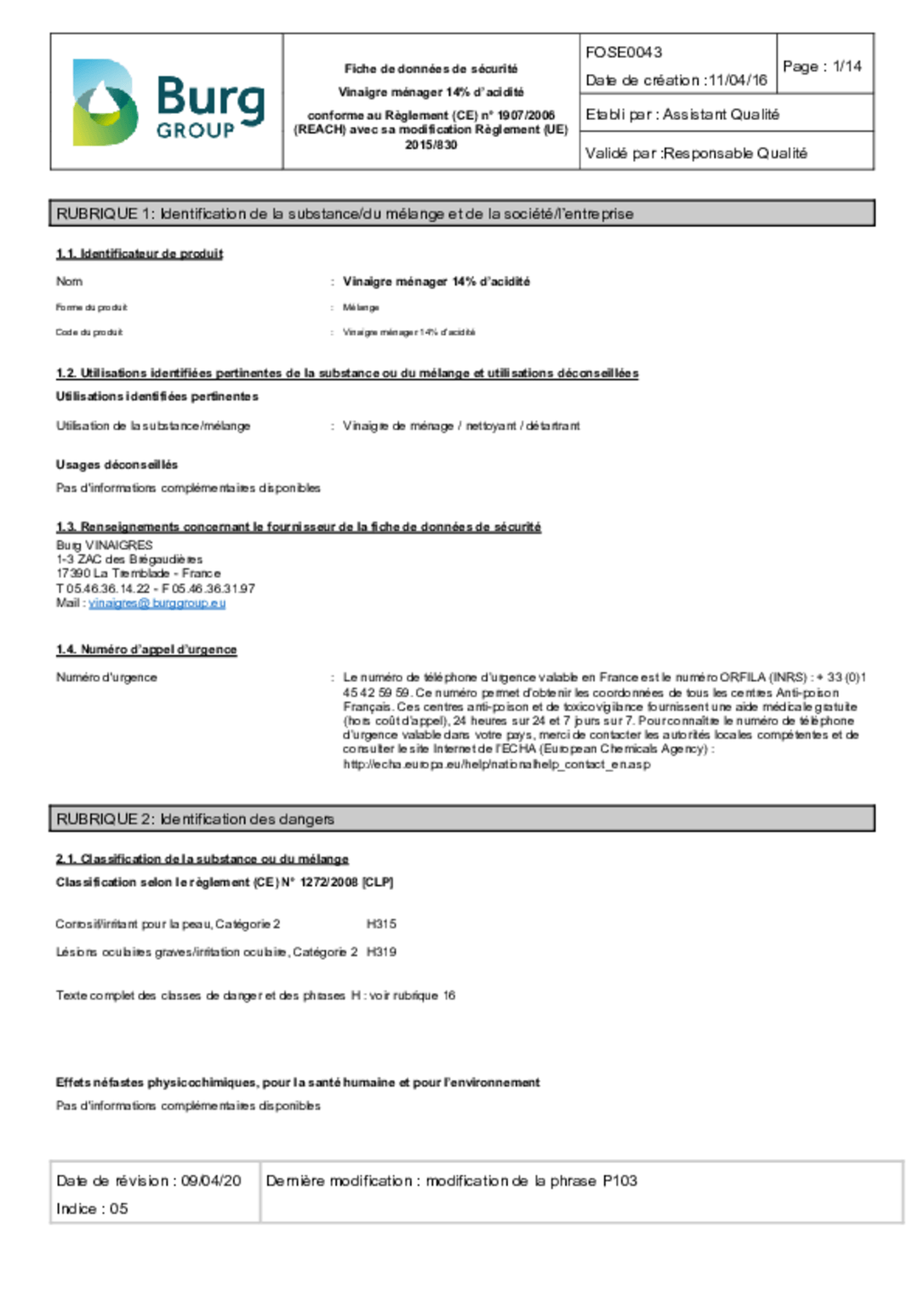 Solution aqueuse d'hypochlorite de sodium 9,6 % chlore actif (ou 36° chlorométrique). Nettoie, désinfecte,...