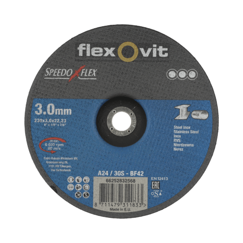 Meule d'ébarbage. Moyeu déporté. Acier/Inox. Usage général. Formule sans soufre, ni fer, ni chlore. Applications...