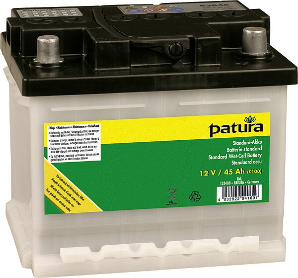 - Batterie standard 12 V / 84 Ah, pour électrificateurs livrée préchargée à sec