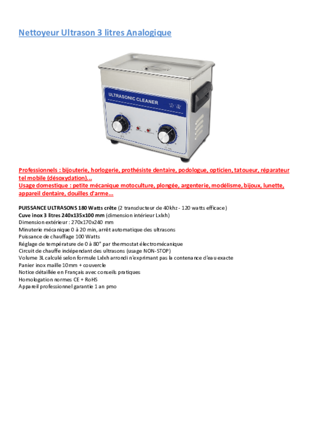 180 W en crête (2 transducteurs de 40khz - 120 W efficace).