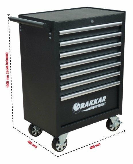 Servante D'Atelier Noire 7 Tiroirs Argent