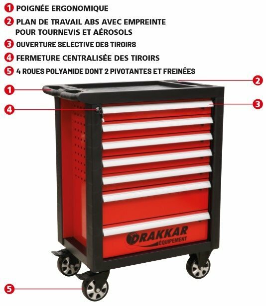 - Servante 7 Tiroirs Rouge (97Cm) Sans Accessoires *Dt* PROMO