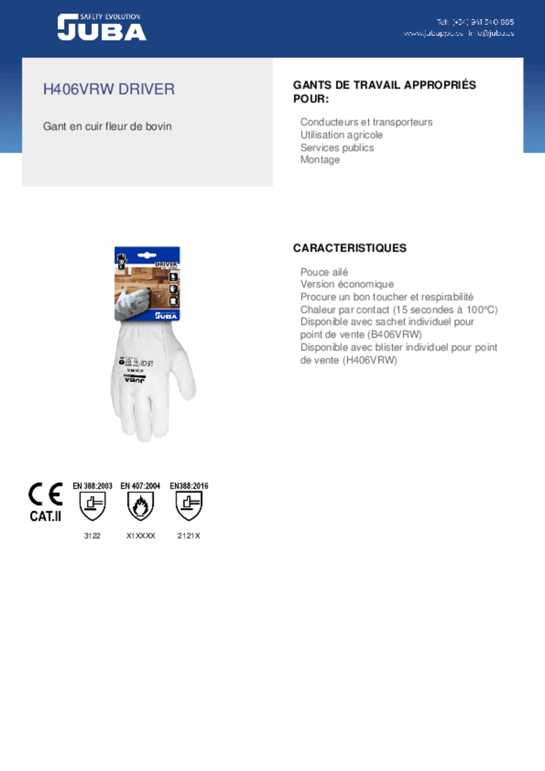 Conformes aux normes EN388:2016:2121X et EN407:2004:X1XXXX.