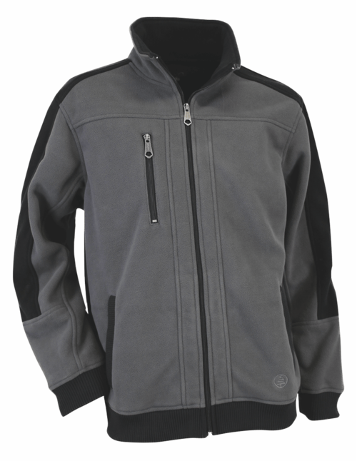 Bicolore : anthracite, noir. 65 % polyester, 35 % coton. 290 g/m². 2 grandes poches en biais sur le devant....