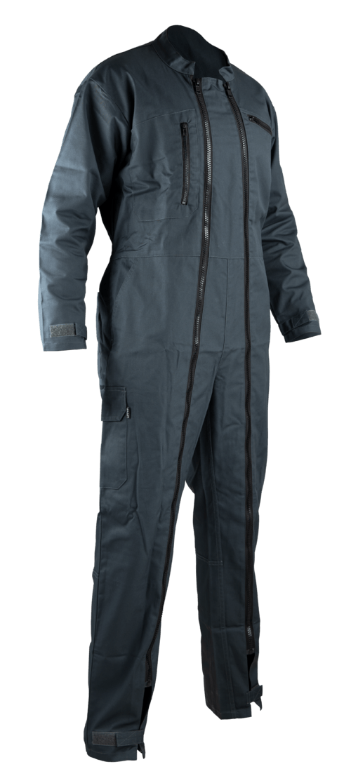 Col officier, bas de manches et bas de jambes ajustables par bande auto agrippante, 2 poches poitrine zipées dont une plaquée ouverture verticale, taille élastiquée dos, 2 soufflets d'aisance dos, 2 poches italiennes, 2 passe-mains. 1 poche plaquée dos, 1 poche téléphone sur le devant de la cuisse fermée par rabat et bande auto agrippante.