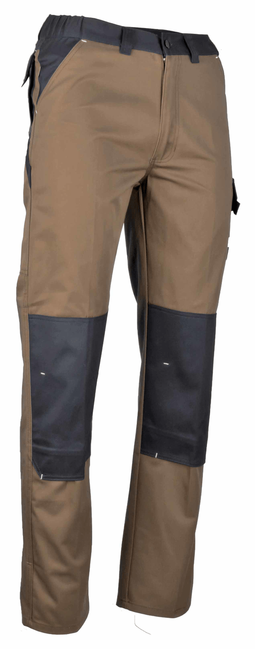 Pantalon. Modèle Argile. Bicolore : gris, noir. 40 % polyester, 60 % coton. 300 g/m². 2 poches western...