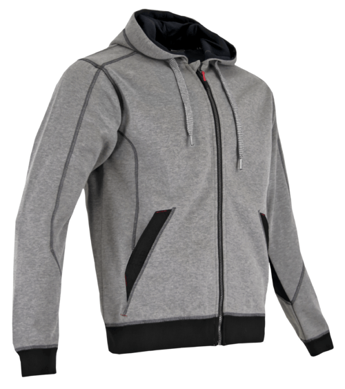 Modèle Panneau. Gris. 100% polyester. 370 g/m². Col cheminée, fermeture à glissière, 1 poche poitrine...