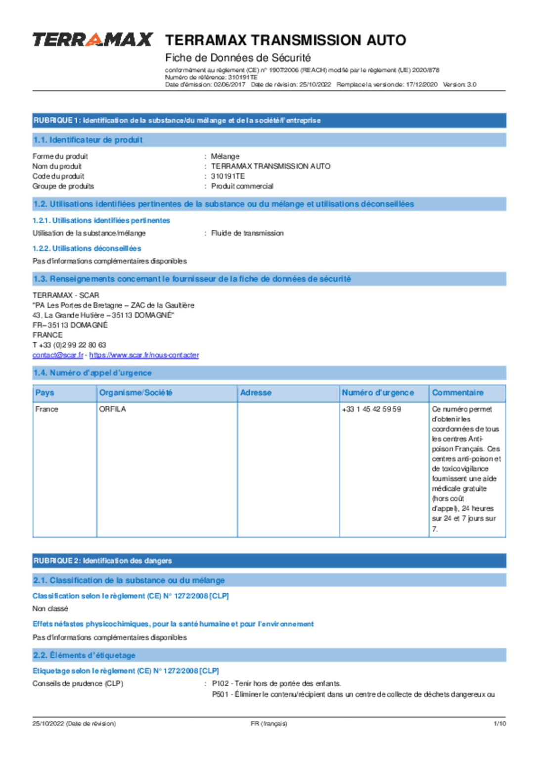 Pour transmissions automatiques, hydrostatiques ou hydrauliques.