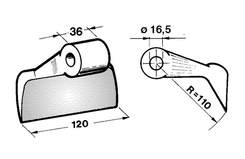 Largeur de travail : 120 mm. Largeur de fixation : 40 mm. Diamètre trou : 20,5 mm. Rayon : 110°.