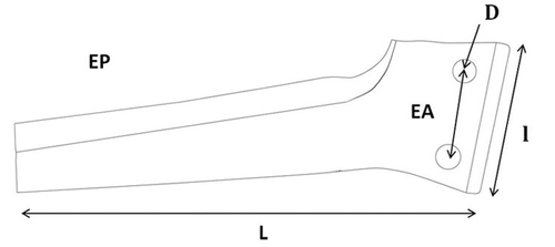 Dent de herse boulonnée 300 x 15 gauche Breviglieri adaptable