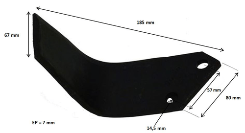 Lame P Equerre Origine. Hauteur : 175 mm. Largeur 1 : 80 mm, largeur 2 : 65 mm. Epaisseur : 5,5 mm. Entre-axe...