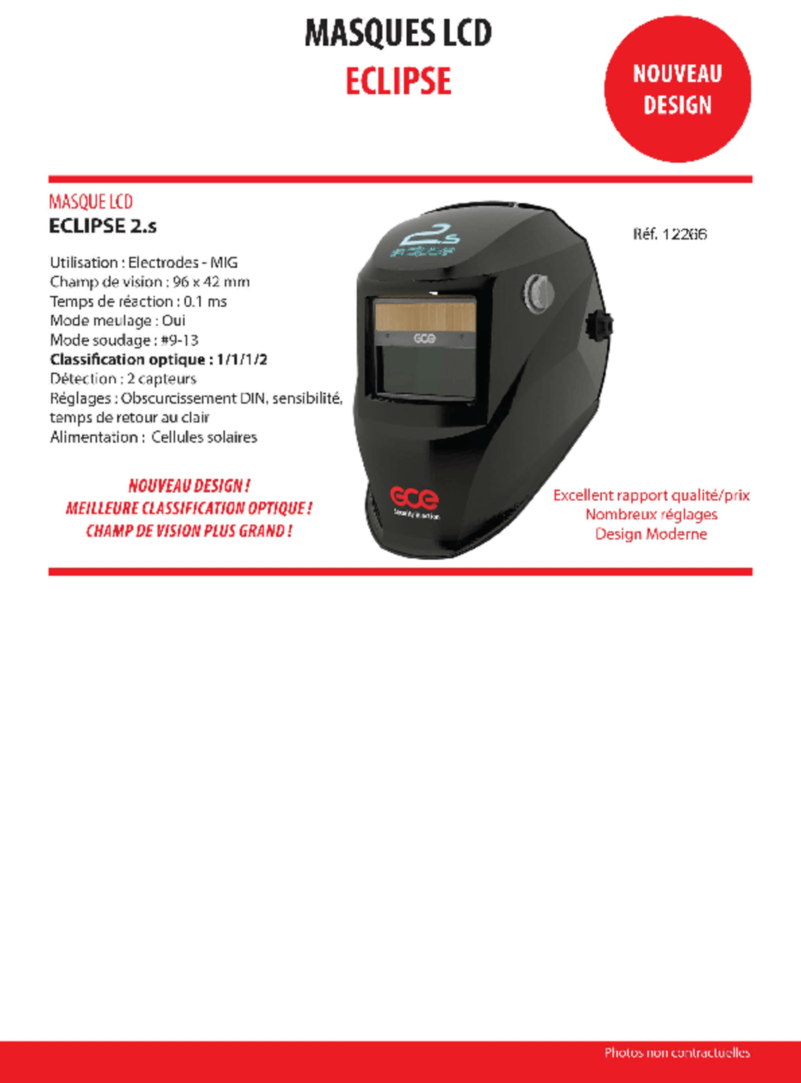 Masque à souder Eclipse 3.s opto-électronique. DIN 9-13 électronique très fiable pour le soudage MIG,...